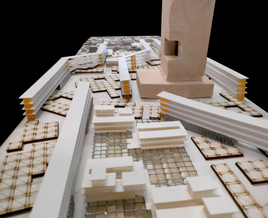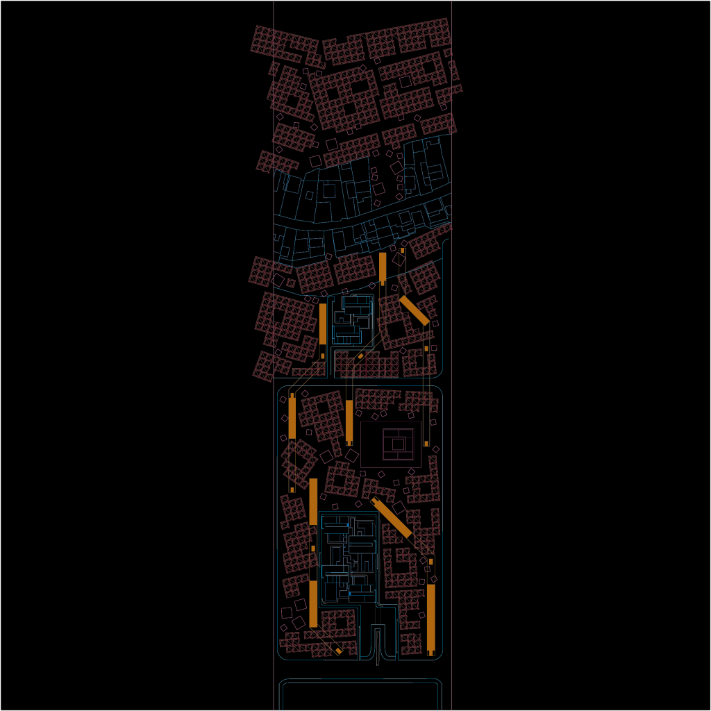 As a result, each of us has been working on a diferent purpose, mixing uses and creating a singular project inside the whole plan, and working at the same time with the idea of a proactive community. Indeed, we have taken in account the construction of public spaces, movility areas for transport, a parking as a capacitor, some productive areas as orchards, also commercial buildings for exchanging products and workshops for secondary activities.