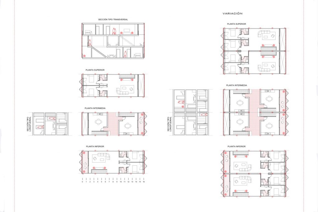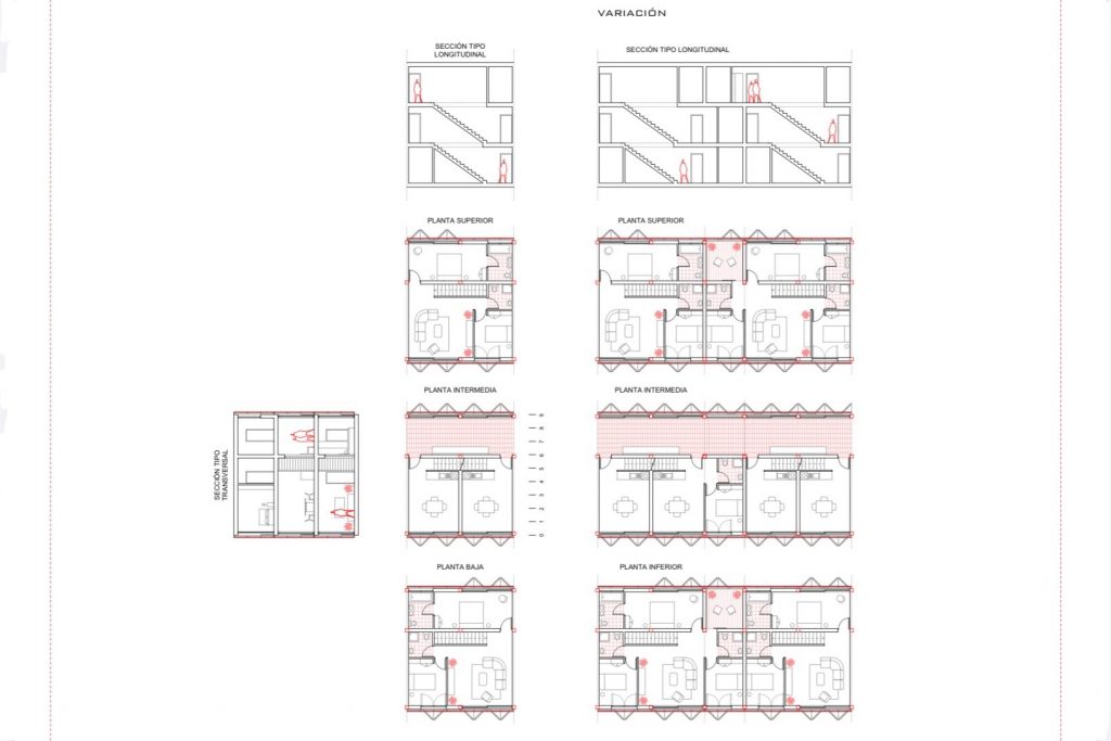 4- El carácter social del conjunto se da en las terrazas que surgen con la celosía, en el corredor-calle-mirador, en las islas y en las