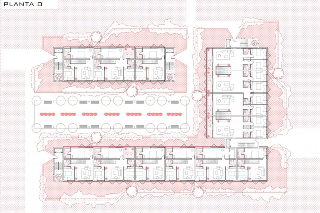 2- Utilizar el elemento «isla» para crear un espacio de separación y mayor privacidad para las viviendas en panta baja. A su vez, este