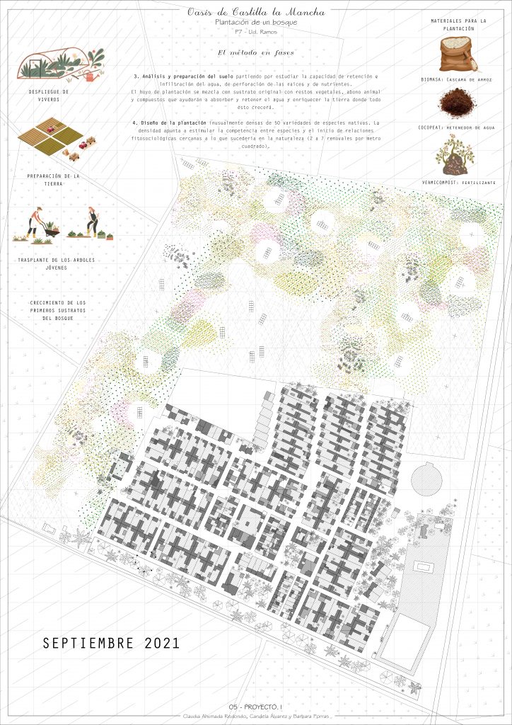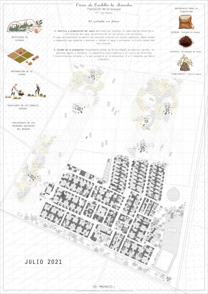 El proyecto de reforestación es el lienzo sobre el que surgen nuestras comunidades. Un oasis en medio del campo amarillo de Castilla La Mancha, que sirve de refugio para neorrurales, temporeros y migrantes. Un oasis de migración y convivencia.