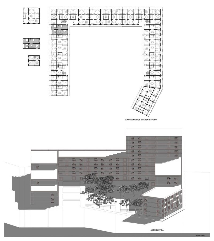 El proyecto busca mejorar la comunicación dentro del barrio y generar fachadas claras hacia las calles. En la zona donde ya se desarrollan edificios residenciales, se plantea una “calle comercial”, destinando las plantas bajas a funciones públicas y comerciales y los pisos superiores a viviendas.