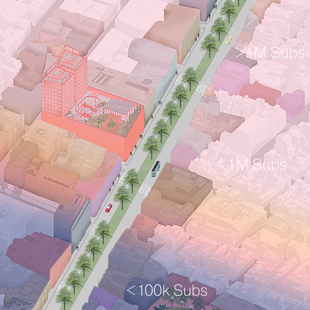 Comunidad de youtubers-streamers que se agrupan en una macrociudad para desarrollar un hábitat vinculado a su oficio. Divididos en núcleos urbanos por su número de suscriptores, crea una sociedad de apariencia igualitaria e idílica pero totalmente clasista.
