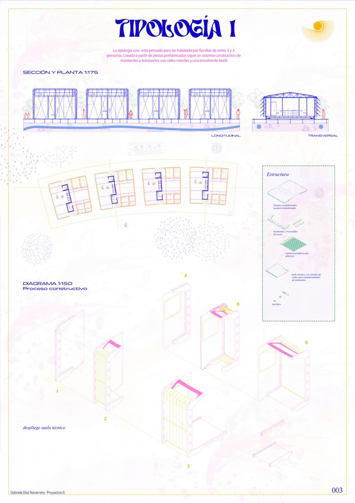 Desde el comienzo del proyecto se juega con la vivienda plegable, creando diversos sistemas que podrán ir extendiéndose conforme crezca la población de la zona.
