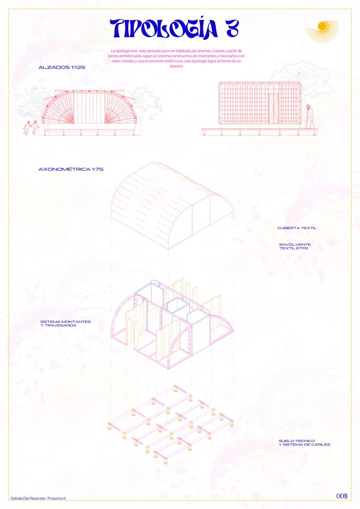 Se busca la inclusión social de las personas que viven en estos lugares, mediante la creación de espacios flexibles, creados a través de un sistema constructivo de montantes y travesaños, con una envolvente textil creada a raíz de etfe, permitiendo el paso de la luz.