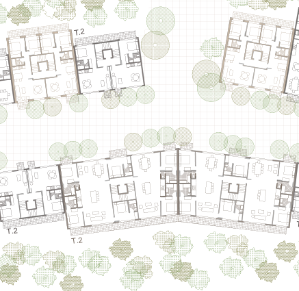 Esta rambla no es un mero eje de paso, sino un espacio habitable, flanqueado por edificios de fachada continua que definen un frente urbano claro, reconocible y humano. Los bajos comerciales activan el plano del suelo, introduciendo usos híbridos que devuelven la intensidad propia de la ciudad tradicional, mientras que los balcones y aperturas hacia la rambla generan una relación directa entre lo doméstico y lo público, entre la vivienda y la calle.